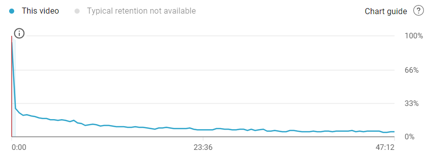 The image above illustrates that the distribution of watching times for a video roughly looks like an exponential distribution. The video is 47min long but many viewers leave early.