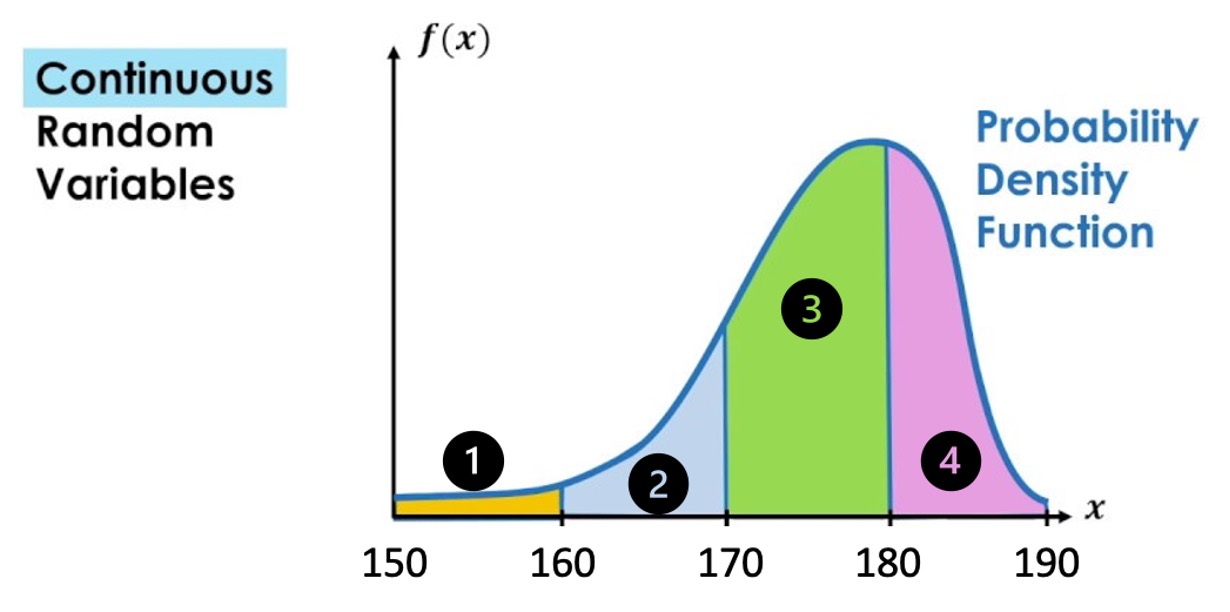 Below is a pdf for a random variable which is defined on the interval between 150 and 190 (formally \((150,190]\)). This means the random variable cannot take any values outside this interval.