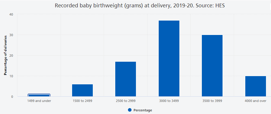 Let’s look at a particular natural process, the weight of babies at birth. This is a continuous random variable, but the following image shows a histogram of a discretised version.