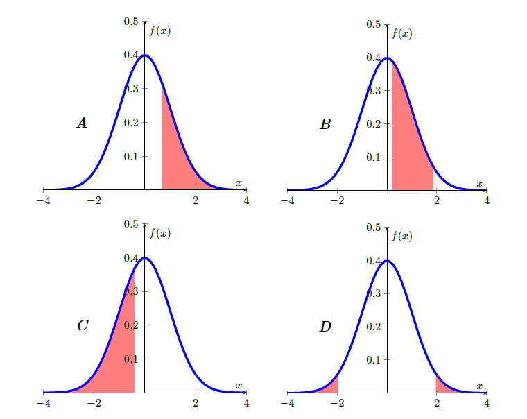 Let \(X\sim N(10,16)\), what is \(\Pr (0<X\leq 14)\).